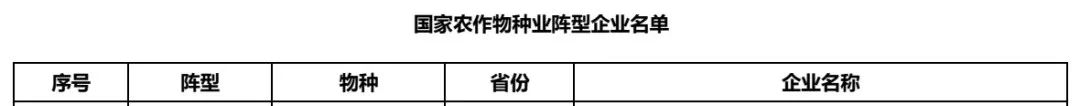 国家种业阵型企业